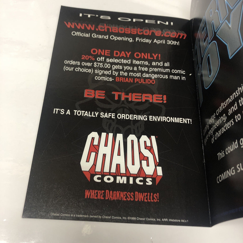 Get your hands on this rare 1999 first issue of Chastity: Lust For Life by Brian Pulido. This suspenseful comic book, published by Chaos! Comics, is graded 9.4 Near Mint and comes with a Certificate of Authenticity. The artwork and storytelling are exceptional, making this a must-have for fans of US Comics.