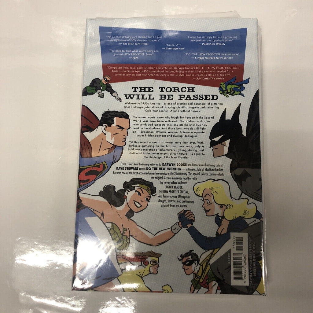 DC The New Frontier Deluxe Edition (2015) HC is a brand new graphic novel by Darwyn Cooke, published by DC Comics. This Modern Age superhero team comic features Green Lantern (Hal Jordan), Wonder Woman (Diana Prince), Superman (Clark Kent), Martian Manhunter, Batman (Bruce Wayne) and Flash (Barry Allen) in a US Comics tradition. The Justice League of America comes together in this hardcover format, making it a must-have for comic book collectors and fans of the genre.