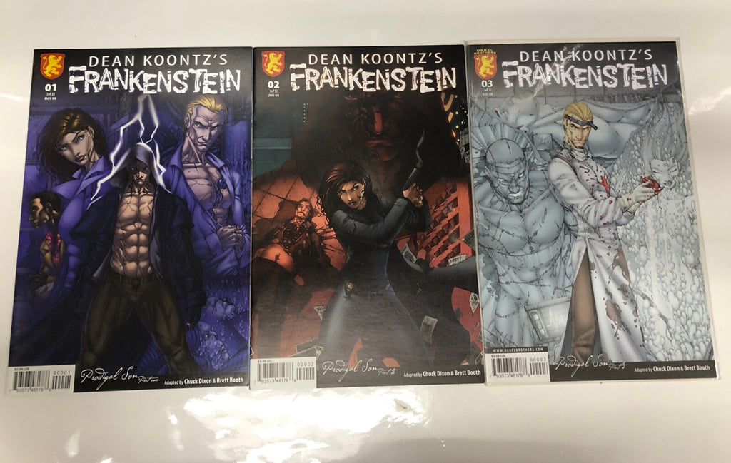 Get your hands on the complete set of Dean Koontz's Frankenstein (2008) comics, featuring issues #1-5 illustrated by Doug Braithwaite. This softcover collection from Dabel Brothers Productions is in a 7.0 Fine/Very Fine grade, perfect for fans of modern age US comics. Immerse yourself in this gripping war genre series that will keep you on the edge of your seat from start to finish.