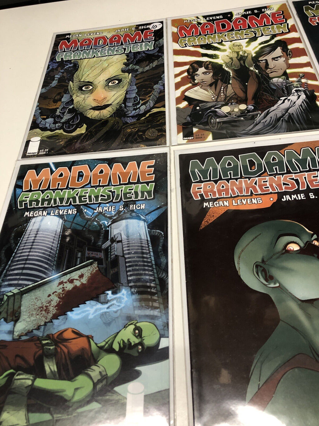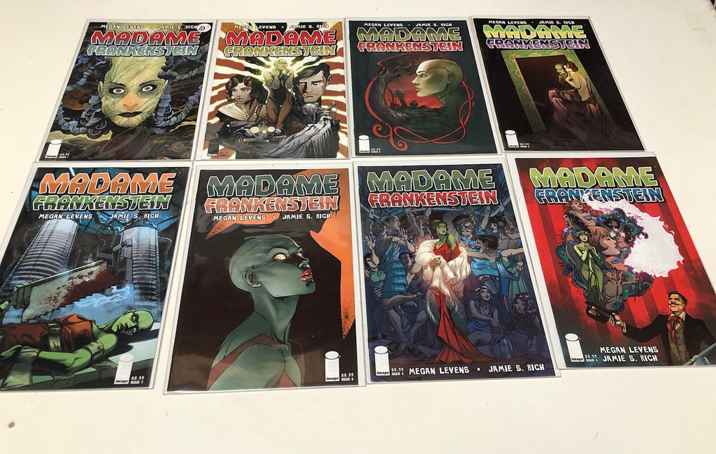 Delve into the gripping world of "Madame Frankenstein" with this complete set of issues #1-7, published in 2014 by Image Comics. Each comic book in this lot showcases the compelling work of artist and writer Megan Levens, inviting readers into a richly illustrated adventure that is a part of the modern DC Universe.