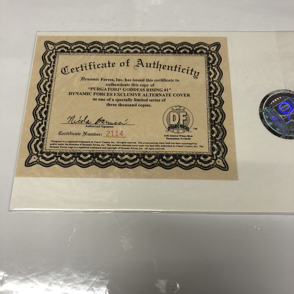 Purgator: Goddess Rising (1999) #1 in Near Mint condition. This action-packed comic book features the character Purgator, written by Marc Andreyko and published by Chaos! Comics. The comic is in English and belongs to the Modern Age era of US comics.