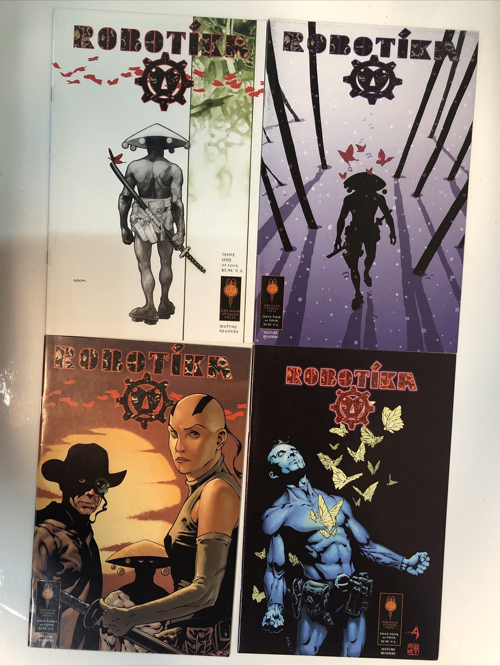 Get your hands on the complete mini-series of Robotika, published by Archaia Studios Press in 2006. This action-packed comic book follows the adventures of the character Robotika in a modern era setting. The comic book is in very good condition with a grade of 9.0 very fine/near mint.