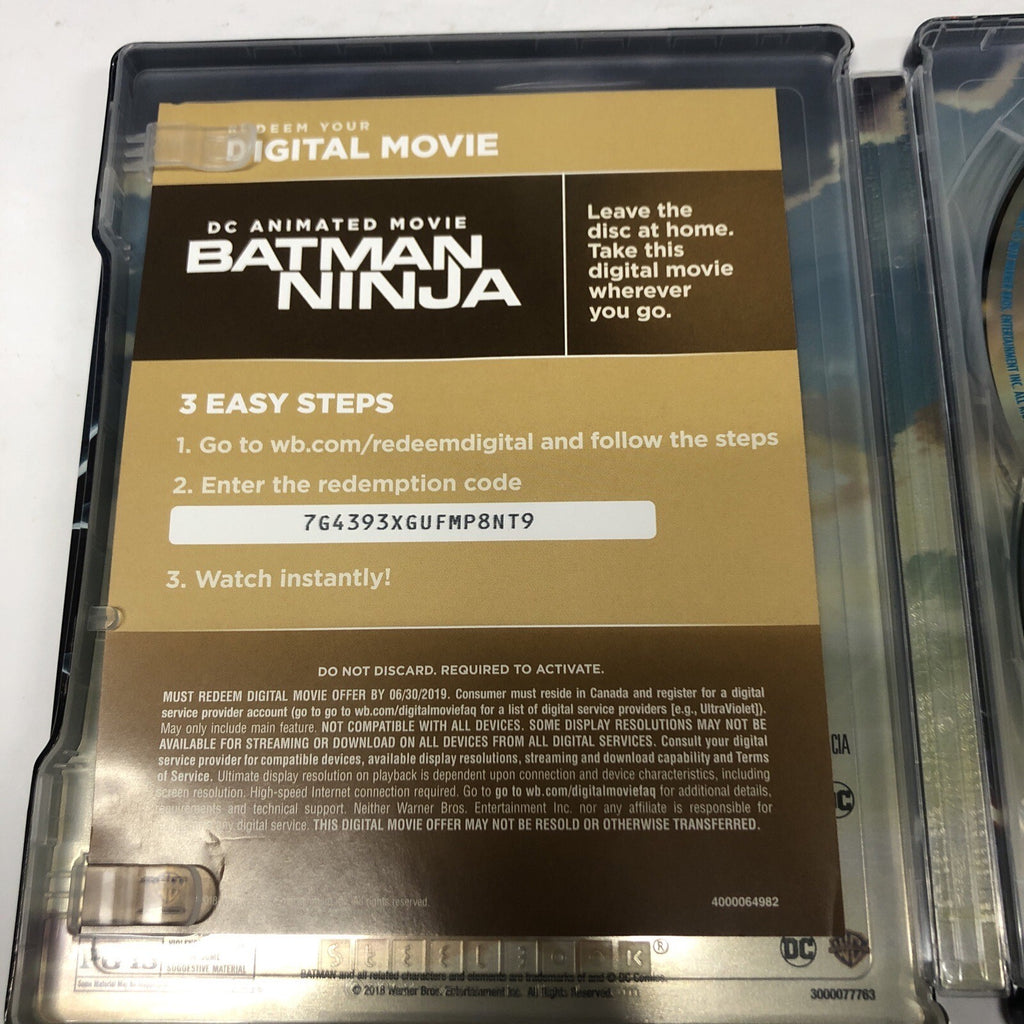 Experience the ultimate adventure with Batman Ninja (2018) Limited Edition Steelbook Blu-ray + DVD. This 2-disc set includes both the Blu-ray and DVD formats, making it a versatile addition to your collection.