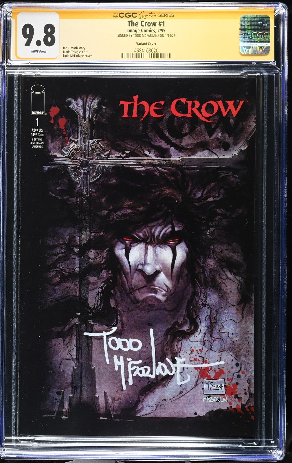 The Crow (1999) # 1 (CCC SS 9.8 WP) Signed Full Todd McFarlane * Variant