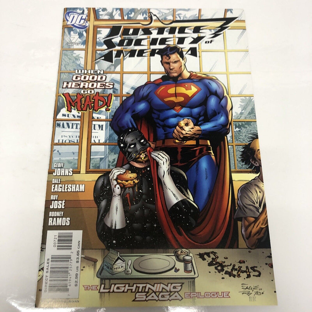 Justice Society Of America (2007) #7 Variant Cover by Geoff Johns is a must-have for any fan of US Comics. This issue, part of the Modern Age (1992-Now) era, features an action-packed storyline and a rare 1:10 variant cover. The comic is in 9.0 Very Fine/ NEAR MINT condition, making it a great addition to any collection of comic books and memorabilia.