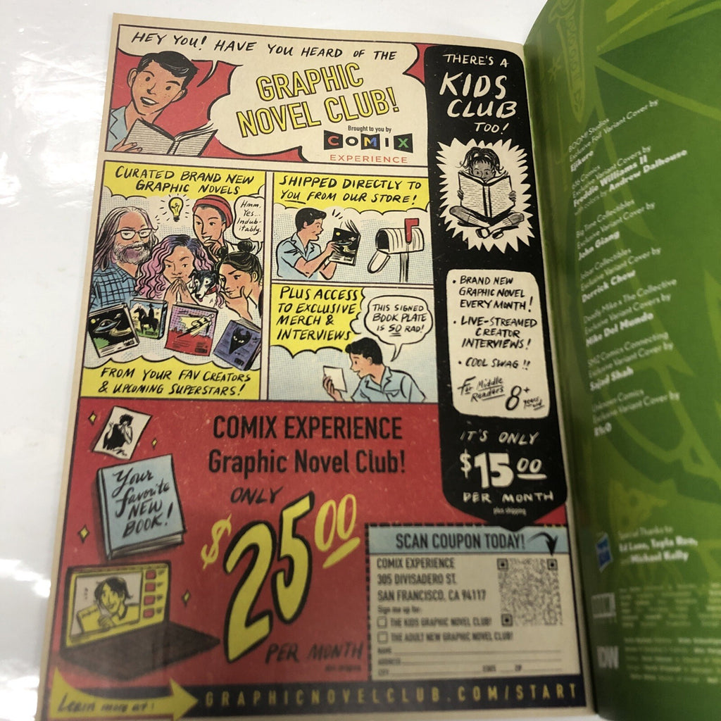 This 9.4 Near Mint graded comic is published by BOOM! Studios and is in English language. The comic is a variant cover and is a part of the Mighty Morphin Power Rangers / Teenage Mutant Ninja Turtles series title. Don't miss out on this exciting crossover event that brings together two of the most popular franchises of all time.