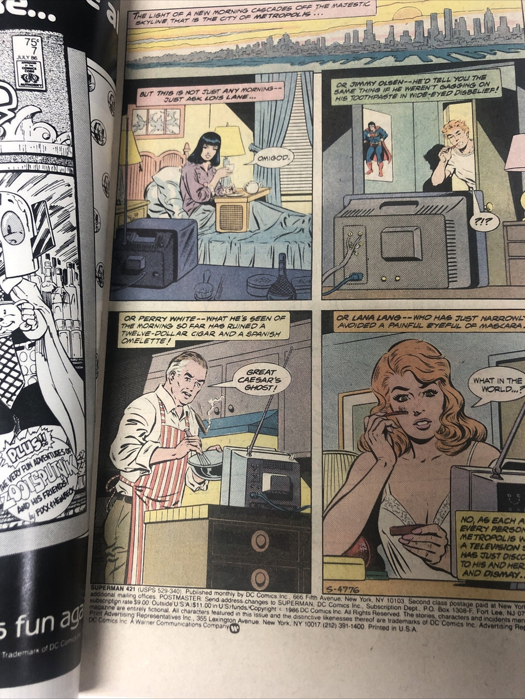 Superman (1986) #421 in Near Mint condition is a must-have for any collector of US Comics. This Canadian Price Variant comic book, with artwork by Cary Bates, is a rare find and a great addition to any collection. The comic features Superman, the iconic superhero, and is written in English.