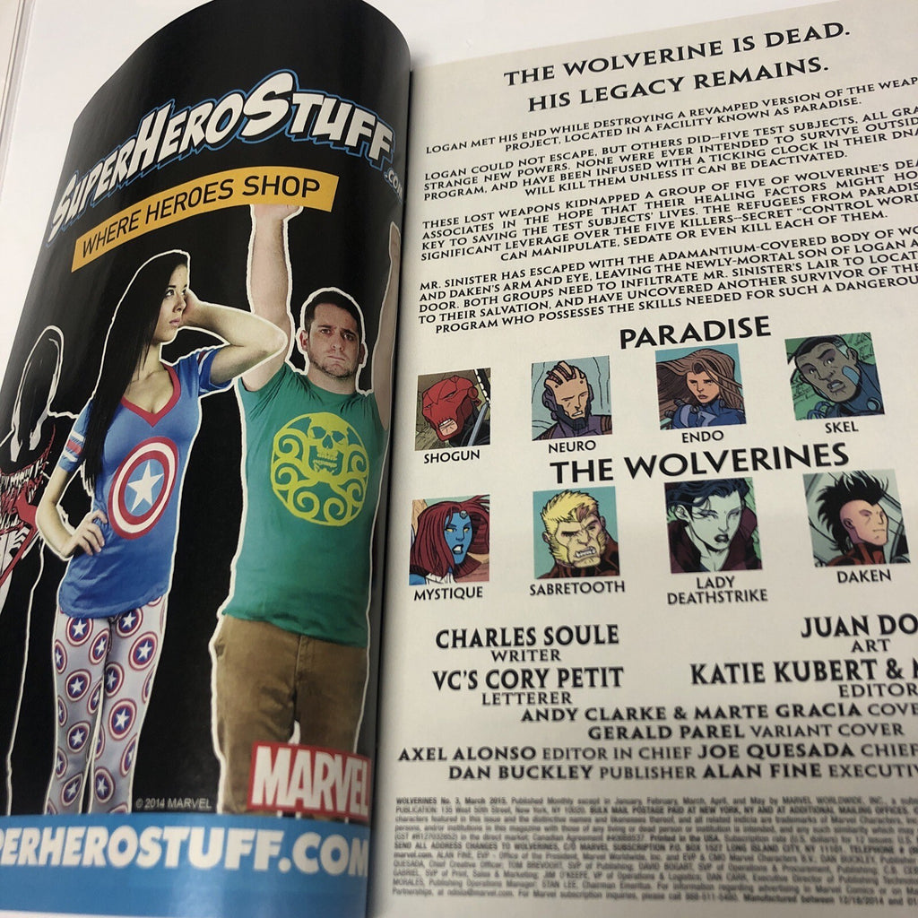 Get your hands on the Variant Edition of Wolverine #3 (2015), graded 9.0 Very Fine/Near Mint. Written by Charles Soule and illustrated by Juan Doe, this action-packed issue is a must-have for any fan of the classic Marvel superhero.