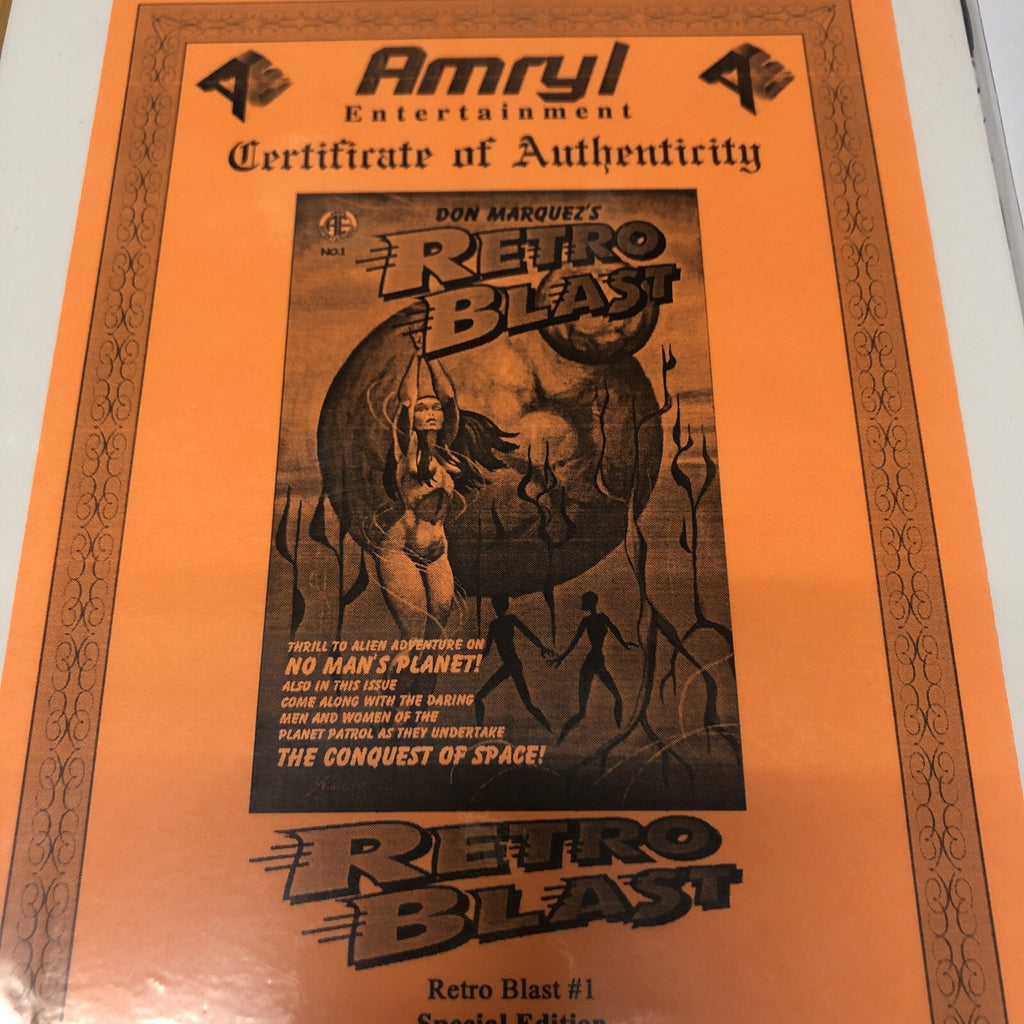 Retro Blast (2002) #1 (NM) Variant Cover by Don Marquez, published by Army Entertainment. This US Comic from the Modern Age features superheroes in a collectible 9.4 Near Mint grade. The comic is in English and comes with a certificate of authenticity.
