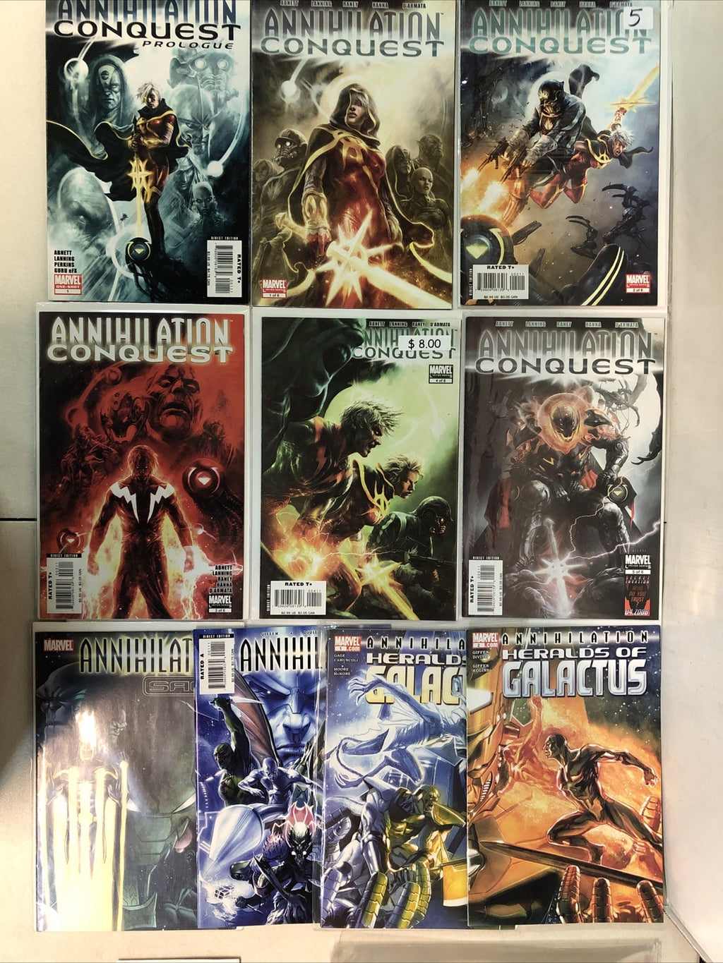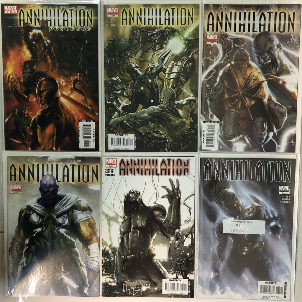 Annihilation (2006) is an epic event in the Marvel Universe, and this e-commerce listing offers 45 different sets and titles in Very Fine/Near Mint condition. Featuring popular characters such as Super-Skrull, Silver Surfer, Thanos, and Galactus, this collection spans the Fantastic Four, Guardians of the Galaxy, and Avengers superhero teams.