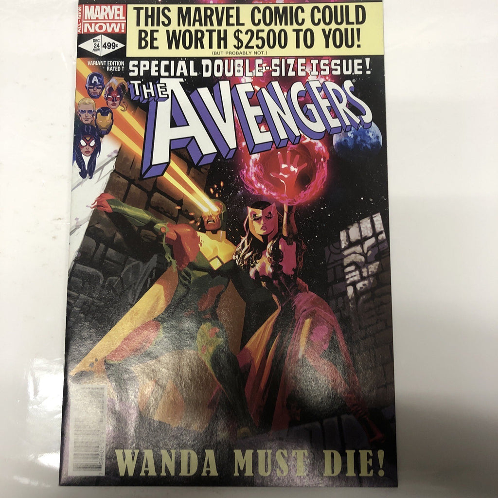 Get your hands on "The Avengers (2014) # 24" comic book, written by Jonathan Hickman, in English language and published by Marvel Comics. This variant edition features a Wanda Must Die storyline and is graded 7.0 Fine/Very Fine.